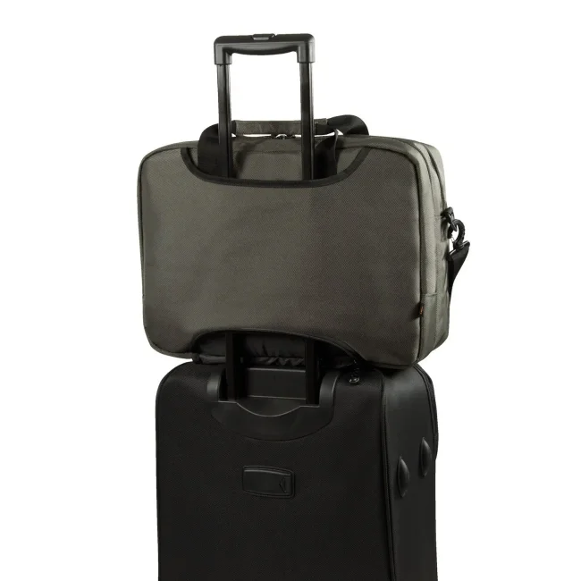 100% poliestere 1680d. Borsa dotata di scomparto principale imbottito, scomparto porta-notebook imbottito e supporto, tasca anteriore con chiusura lampo con elementi organizer, tracolla regolabile. Dimensioni: 44 x 32 x 15 cm, capacita': 26 litri, area di stampa: 18 x 7 cm.