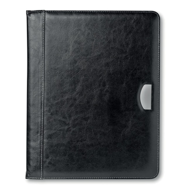Portadocumenti A4 con placca in metallo e blocnotes da 20 fogli incluso. In PU.