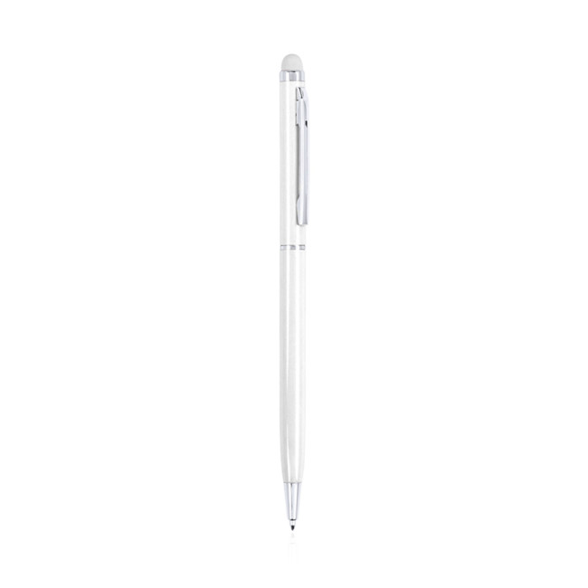 Penna Touch con meccanismo a rotazione con fusto in alluminio ultrasottile con finitura metallizzata liscia in diversi colori e touch abbinato. Inserti e anelli color argento. Inchiostro blu.