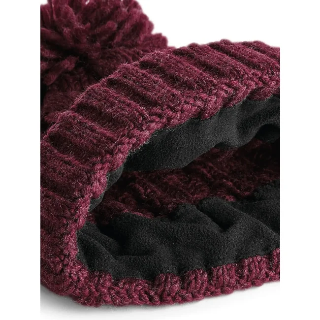 100% acrilico Soft-Touch. Berretto in maglia melange in filato pesante a trecce, pom-pom abbinato al colore della berretta, morbido al tatto, fascia termica di tessuto Suprafleece, modello con risvolto. Etichetta strappabile.
