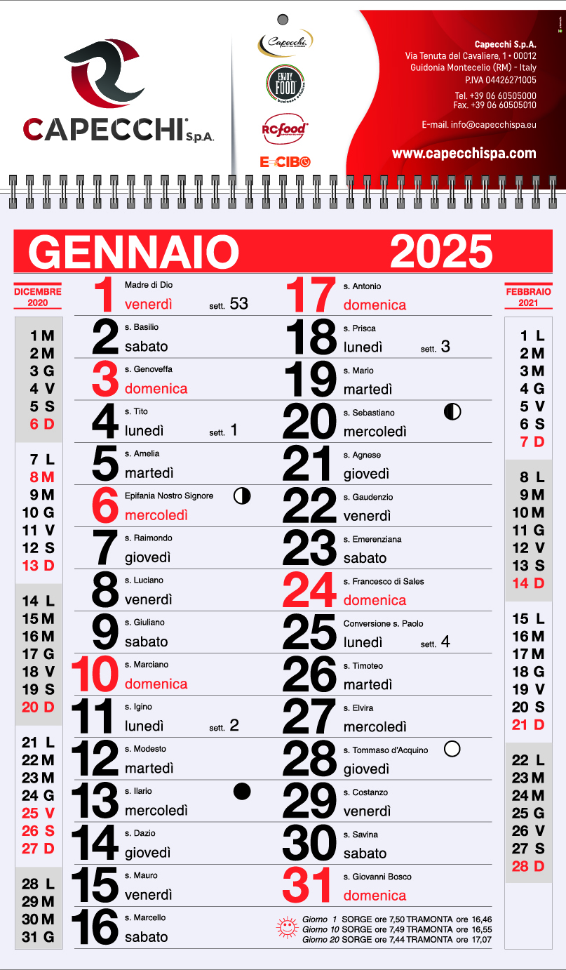 Calendario mensile olandese 12 fogli, con spirale, carta da gr.80 e cartone da 400 gr.