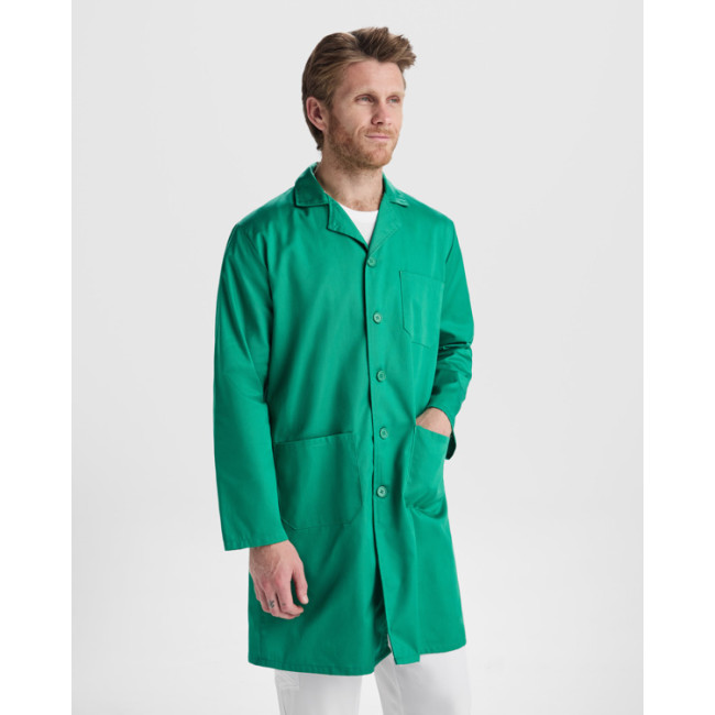 Camice di servizio manica lunga, caratterizzato da collo con bavero e apertura centrale con 5 bottoni in tinta. Include una tasca sul petto e due tasche laterali per una maggiore praticità. Personalizzabile per esigenze aziendali, è una scelta eccellente per un abbigliamento professionale e funzionale.