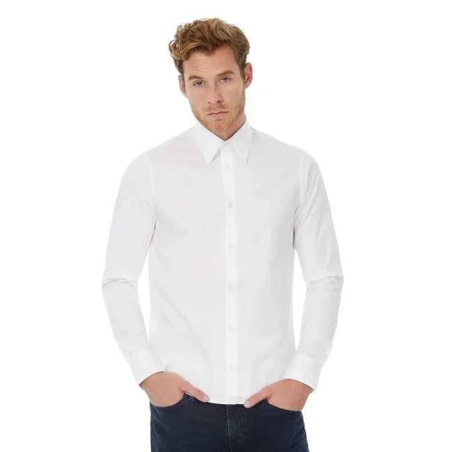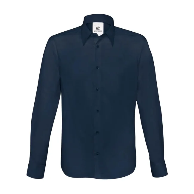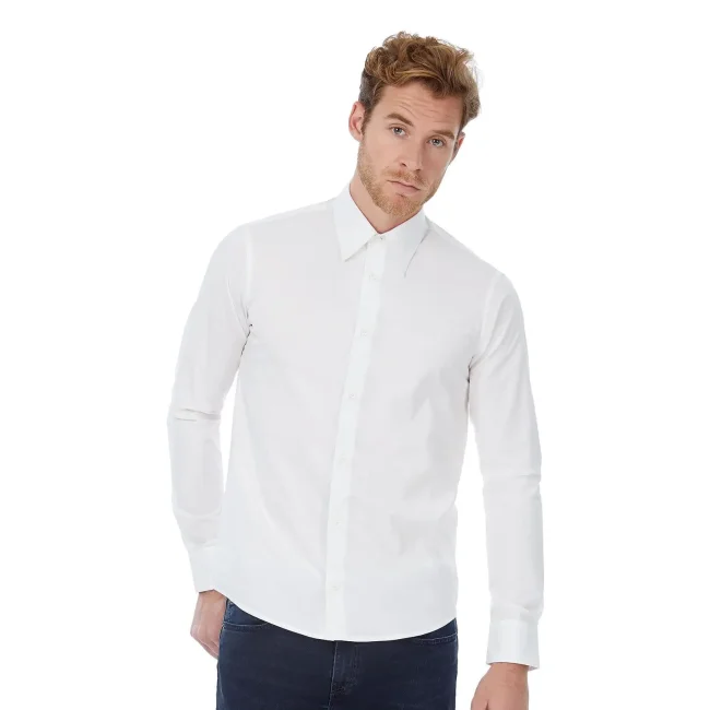 La camicia uomo London è realizzata in un mix di cotone ed elastane, offrendo un comfort eccezionale e un taglio aderente. I bottoni tono su tono e l'assenza di carre' sul dorso facilitano il ricamo e la stampa. Lavabile a 40°C, è una scelta pratica e stilosa per ogni occasione.