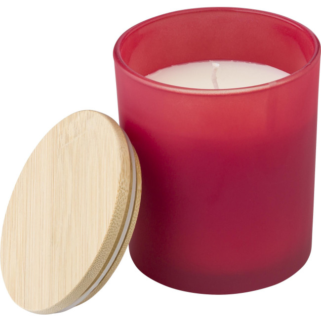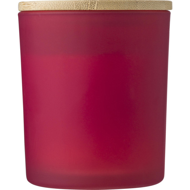 Candela in vetro con cera vegetale e coperchio in bambù, contiene principalmente cera di origine vegetale (cera di carnauba) e ha una durata di circa 46 ore. Quattro profumi a seconda del colore del vetro: cannella (rosso), vaniglia (bianco), legno di sandalo (nero) e gelsomino (verde), confezionata singolarmente in un tubo bianco