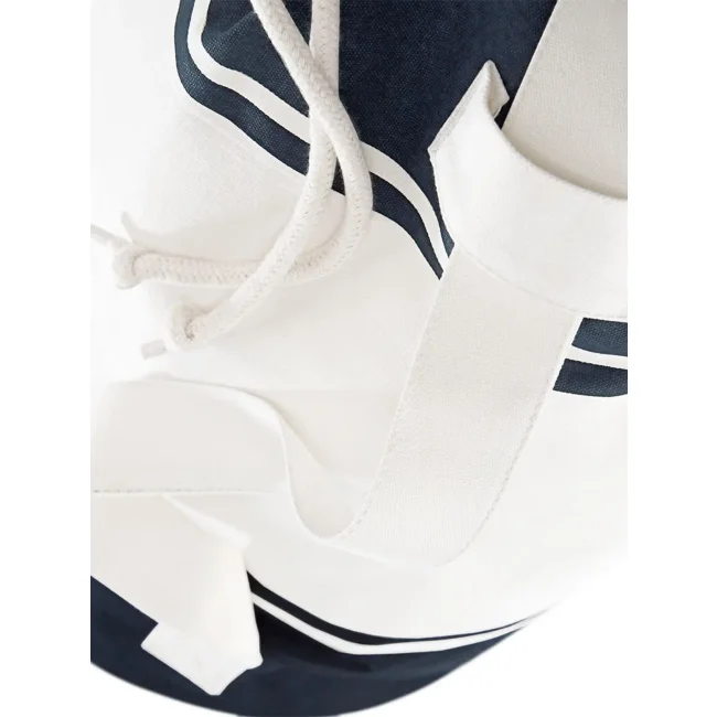 100% cotone Canvas. Sacca stile nautica adatta alla spiaggia, chiusura con cordoncino. Etichetta removibile. Dimensioni: 30 x 53 x 30 cm, capacita': 30 litri, area stampabile: 41 x 18 cm.