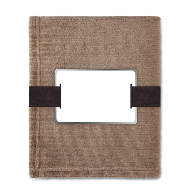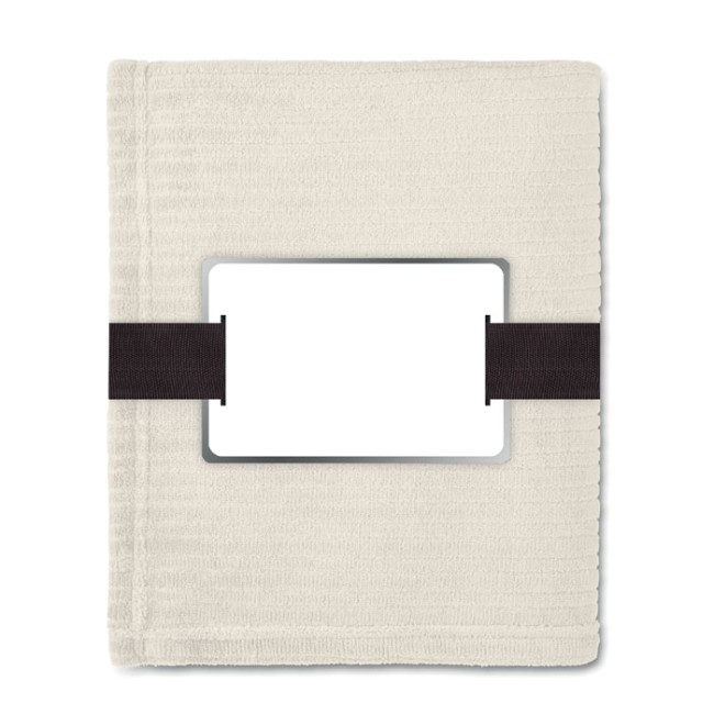 Coperta in pile morbido 240gr, confezionata con nastro e cartoncino stampabile.