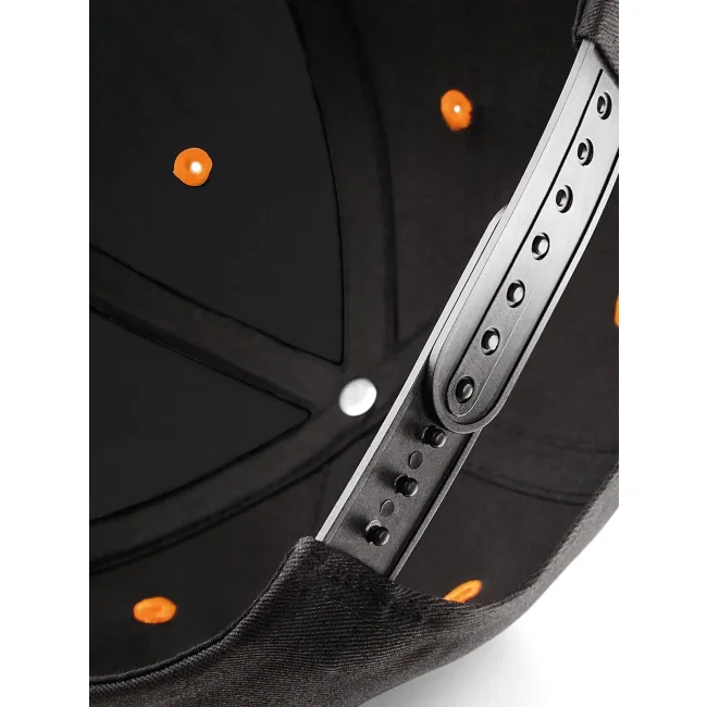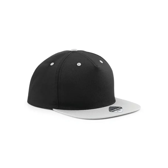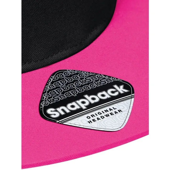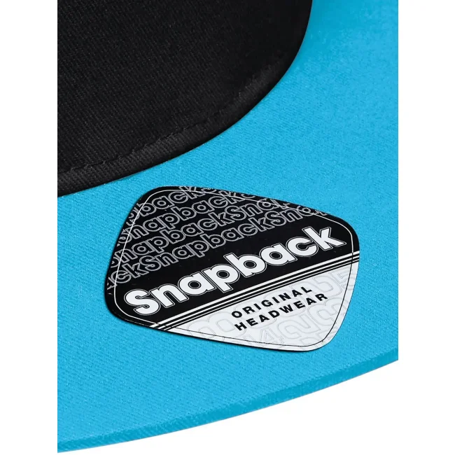 Cappellino a 5 pannelli realizzato in 100% cotone twill, dotato di visiera piatta e dettagli a contrasto. La chiusura snapback consente una regolazione facile, mentre l'etichetta strappabile offre la possibilità di branding. Taglia unica, adatto per diverse occasioni.