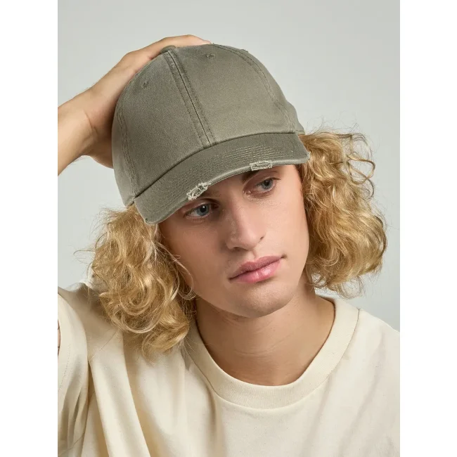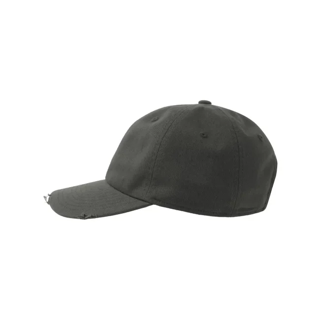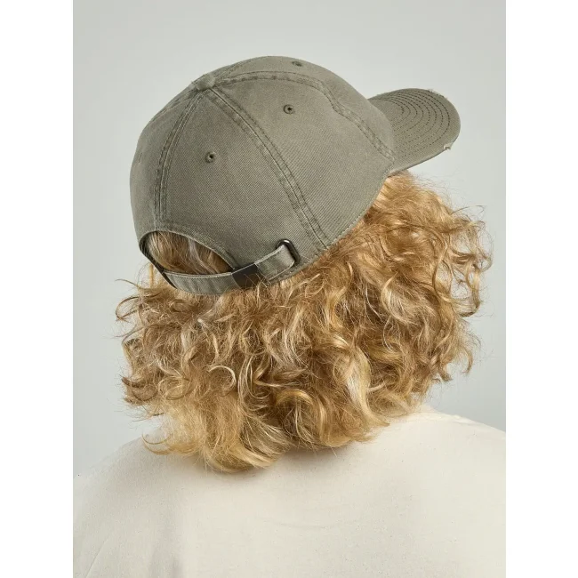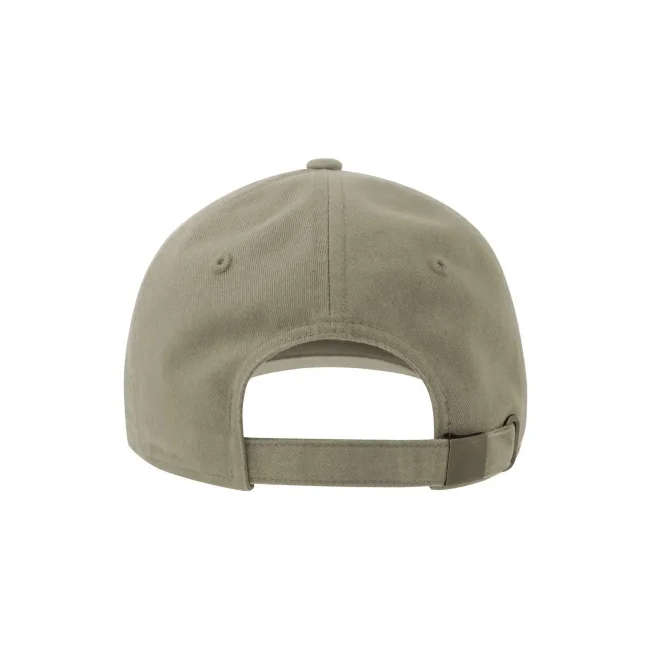 Cappellino a 6 pannelli realizzato in cotone twill organico e riciclato, dotato di mid visor, occhielli ricamati e chiusura con fibbia. Presenta un foro in metallo e 8 cuciture su visiera, disponibile in taglia unica.
