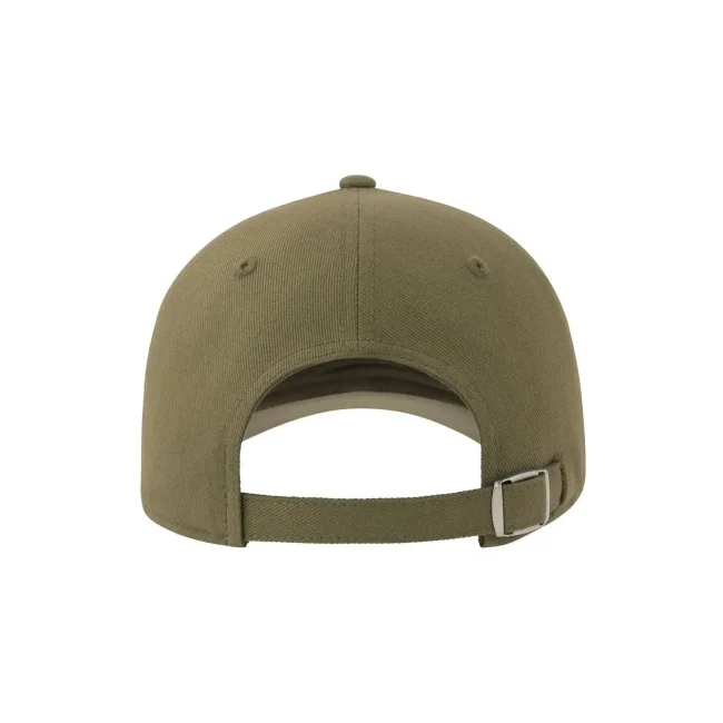 Cappellino Liberty Sandwich-S realizzato in cotone organico twill pesante spazzolato e cotone riciclato, presenta una visiera tipo sandwich con inserto a contrasto. La chiusura con cinturino passante su fibbia in metallo e l'occhiello ricamato completano il design.