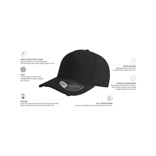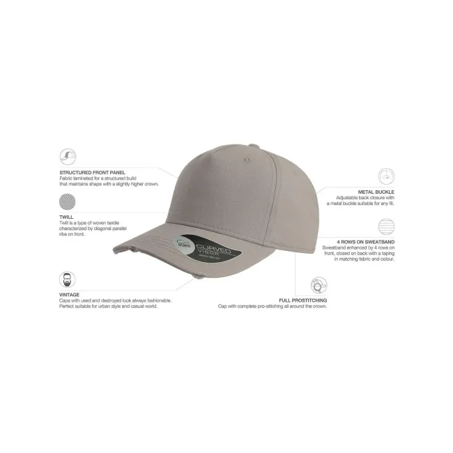 Cappellino Cargo realizzato in 100% cotone chino. Presenta una struttura a 5 pannelli con occhielli ricamati e visiera pre-curvata. Il pannello frontale rinforzato e il parasudore in cotone, insieme alla chiusura con fibbia in metallo, offrono comfort e praticità.
