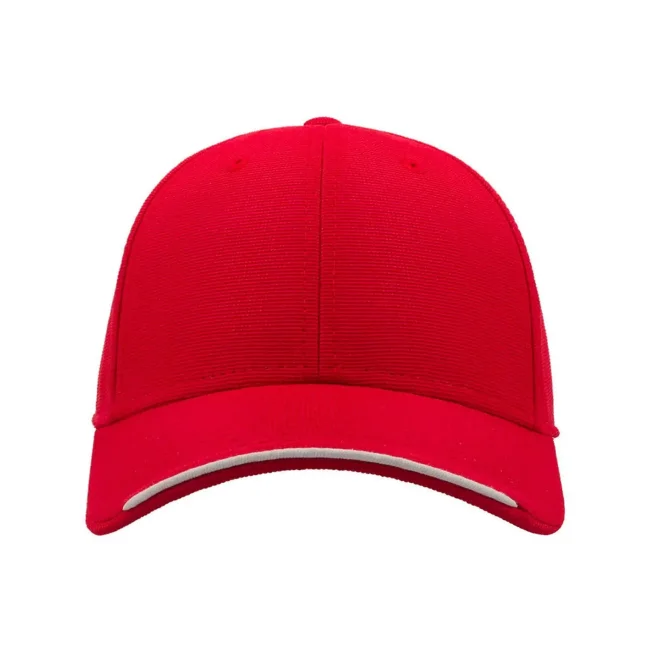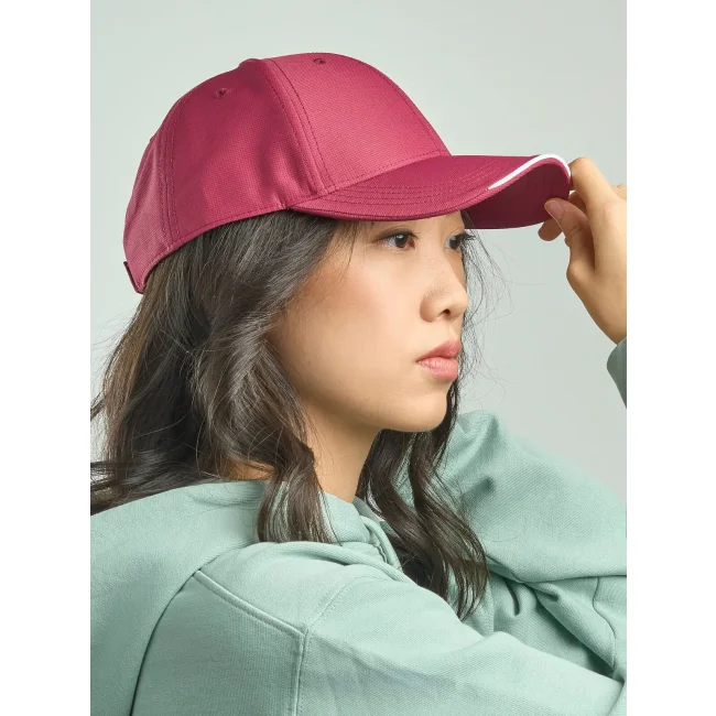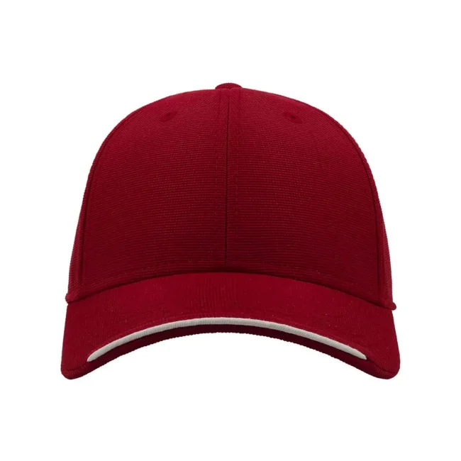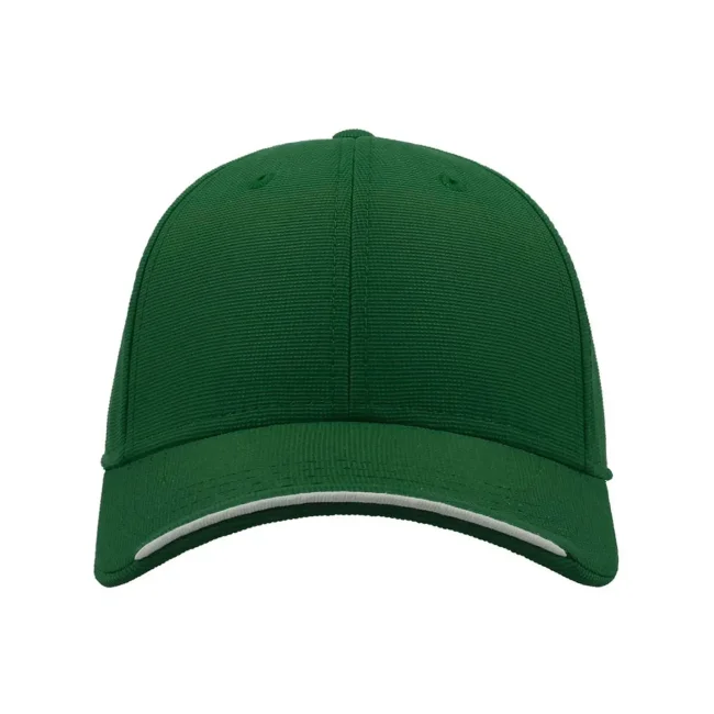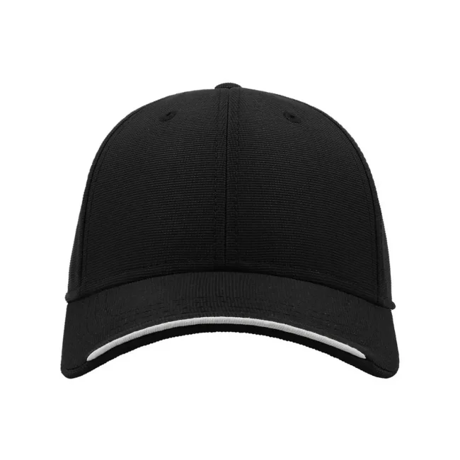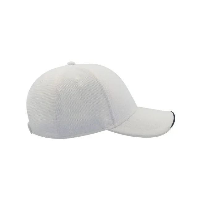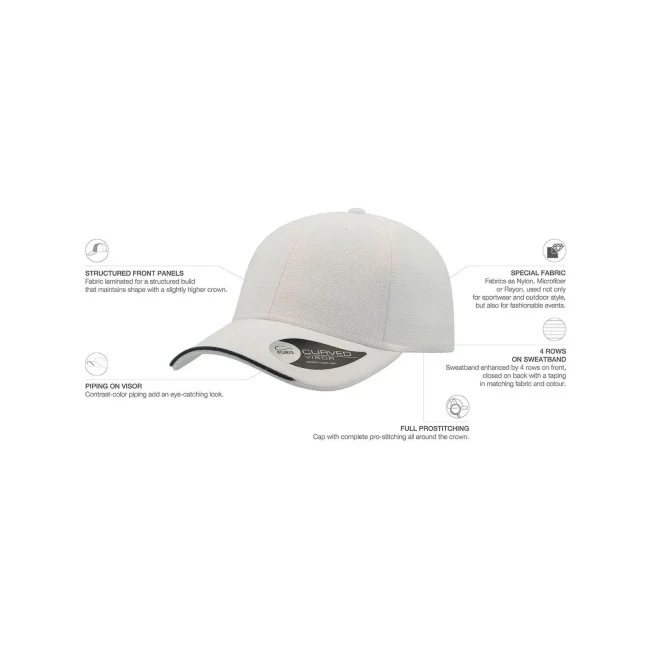 Cappellino Estoril realizzato in 100% poliestere, presenta una struttura a 6 pannelli con occhielli ricamati e un pannello frontale rinforzato. La visiera pre-curvata è dotata di 4 cuciture, mentre il parasudore in poliestere e il piping in contrasto aggiungono un tocco distintivo e comfort.