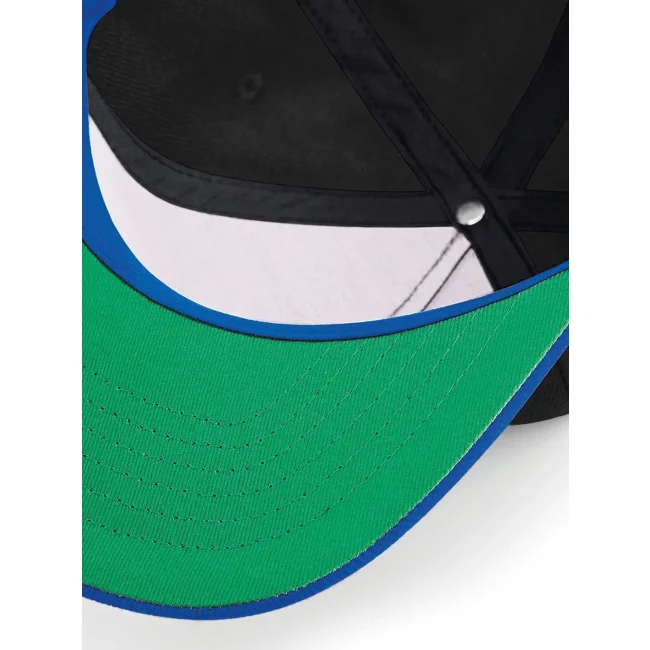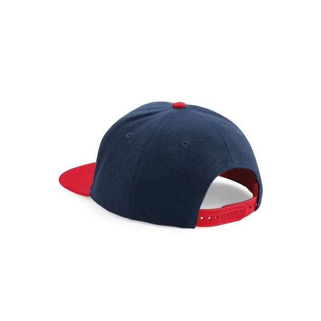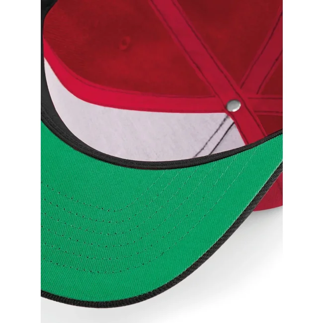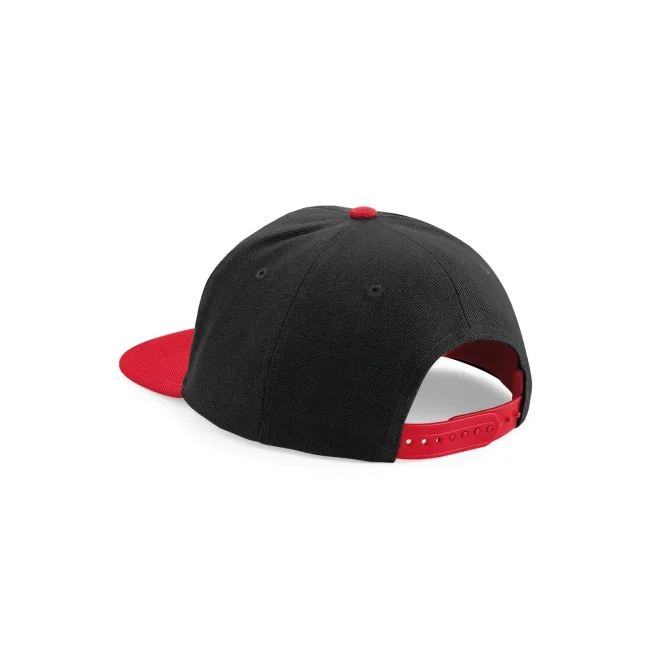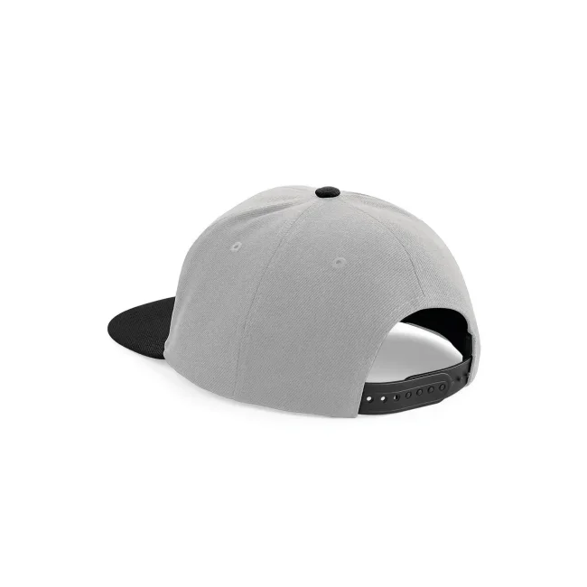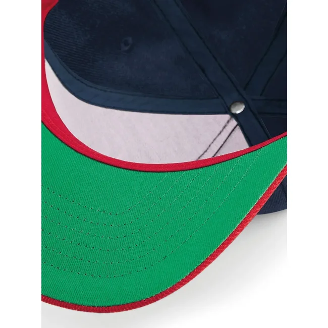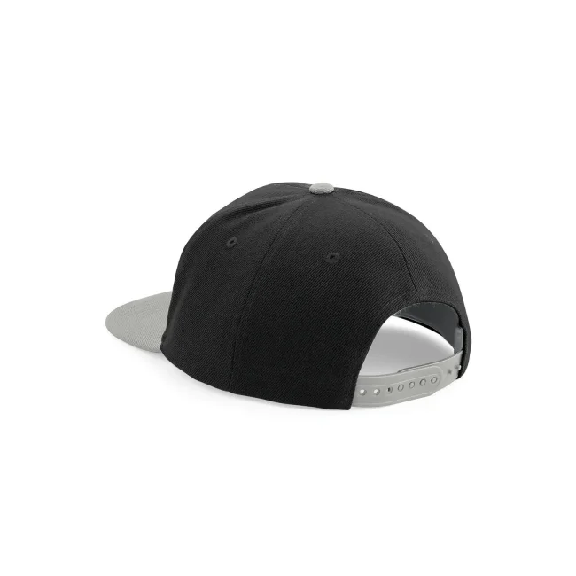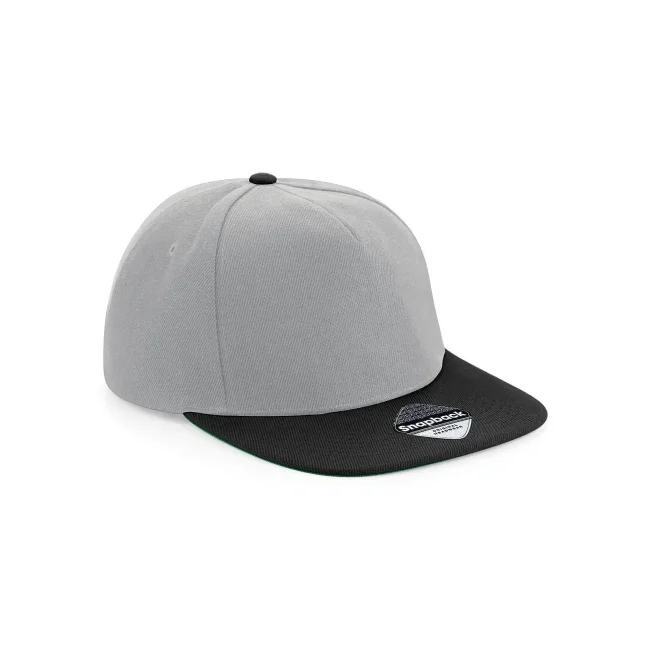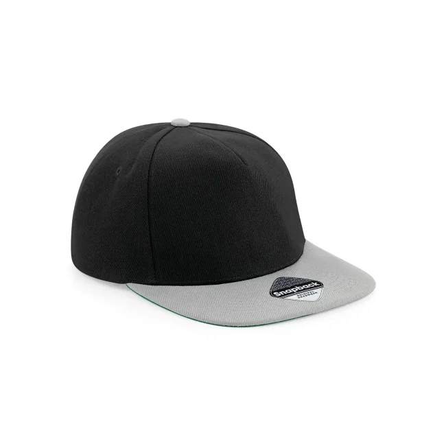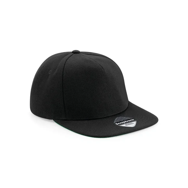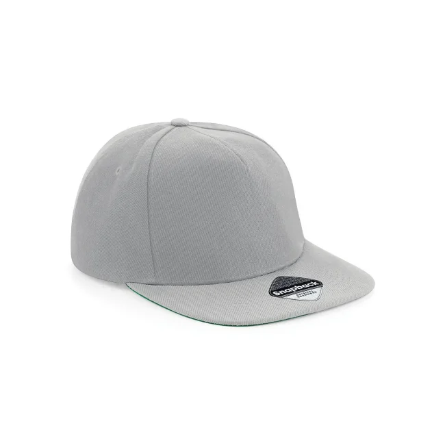 Cappellino Original Flat Peak Snapback realizzato in 100% poliestere twill. Presenta un design a 5 pannelli con visiera piatta e sotto visiera verde. La chiusura snapback e l'etichetta removibile garantiscono una vestibilità comoda e la possibilità di branding.