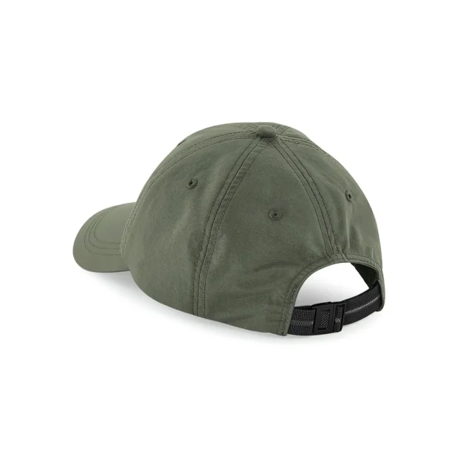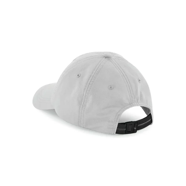 Cappellino a 6 pannelli realizzato in taslon di nylon, offre un tessuto impermeabile e traspirante con visiera pre-curvata. La banda elastica in poliestere Coolmax e la chiusura regolabile con clip lo rendono ideale per personalizzazioni e branding aziendale, con etichetta facilmente rimovibile.