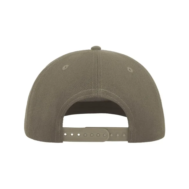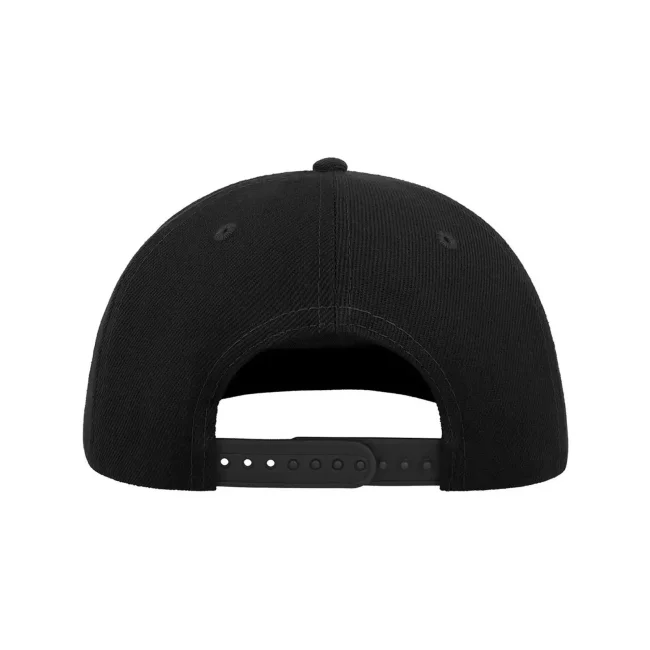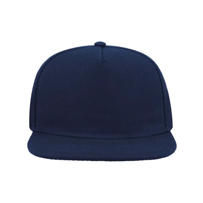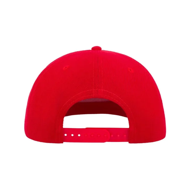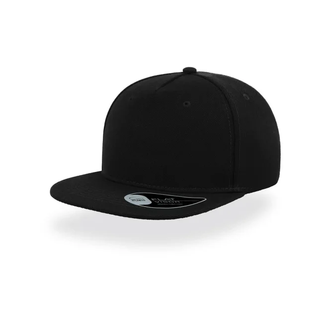 Cappellino Snap Five realizzato in acrilico al 100%, dotato di visiera piatta e chiusura snapback in pvc. Presenta un sottovisiera in cotone e un parasudore composto da cotone e poliestere. Taglia unica con etichetta removibile, ideale per personalizzazioni.