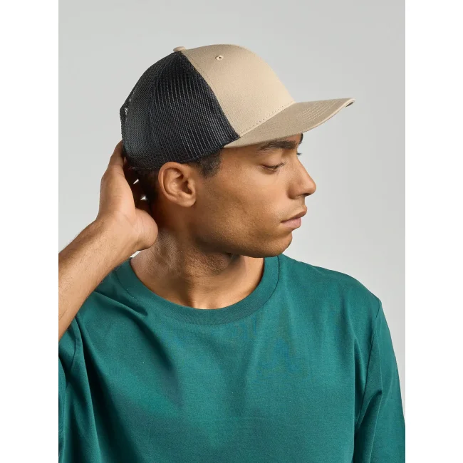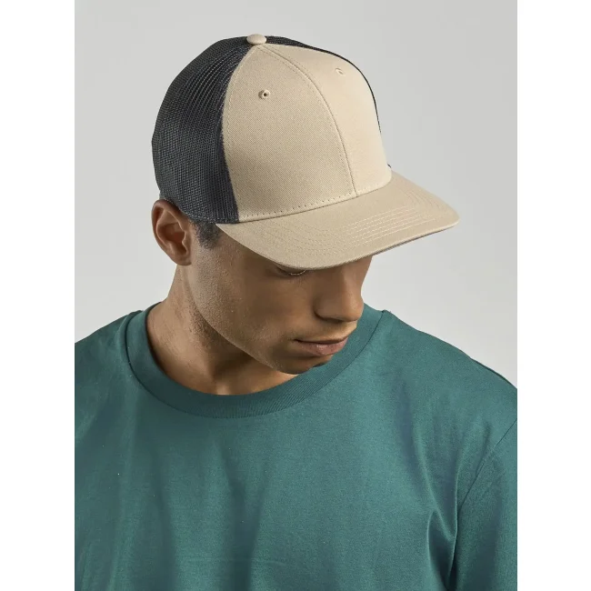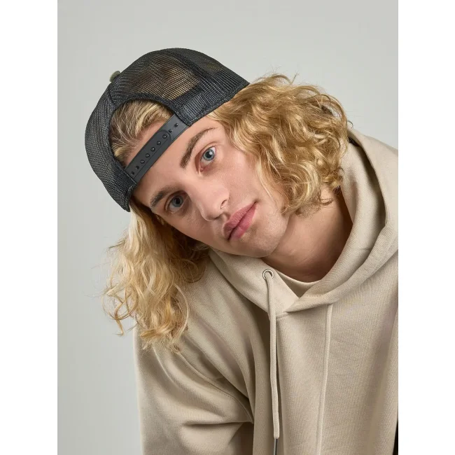 Cappellino Bryce realizzato in 100% poliestere twill riciclato certificato. Presenta una struttura trucker a 6 pannelli con mesh e chiusura snapback. L'ampia corona è ideale per la personalizzazione, mentre il design leggero e traspirante assicura comfort.