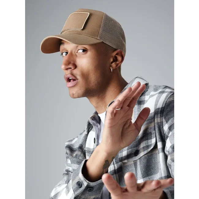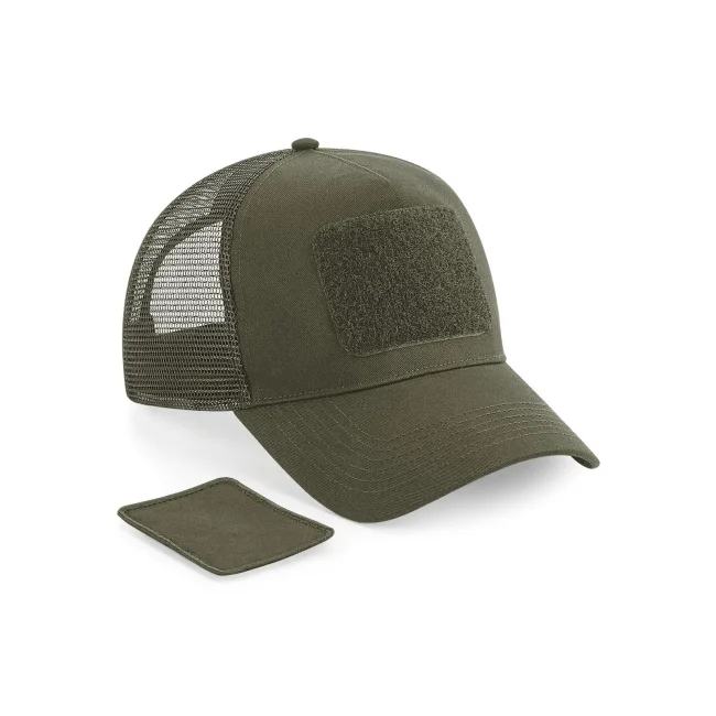 Cappellino a 5 pannelli realizzato in 100% cotone per il pannello frontale e visiera, con pannelli posteriori in mesh di poliestere. Dotato di chiusura regolabile snapback e patch Rip-Strip intercambiabile progettato per la personalizzazione. Taglia unica e etichetta removibile per facilitare il rebranding.