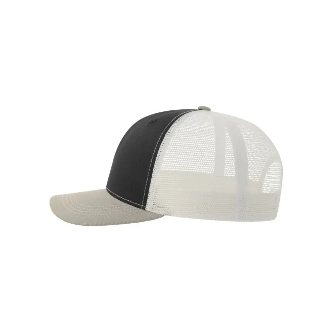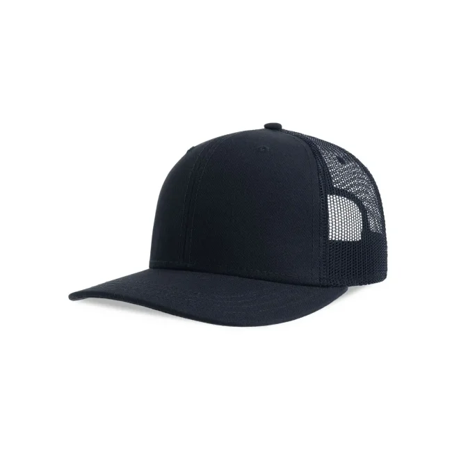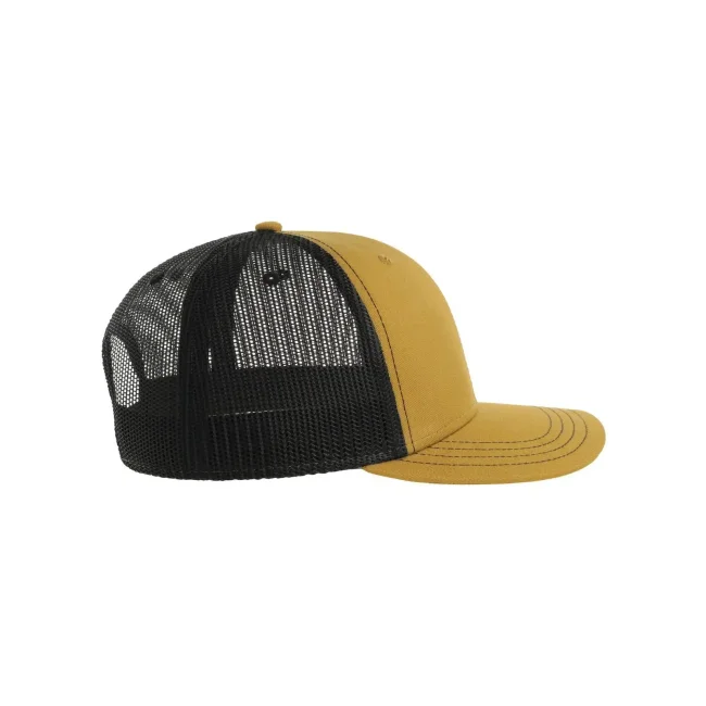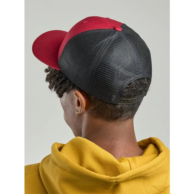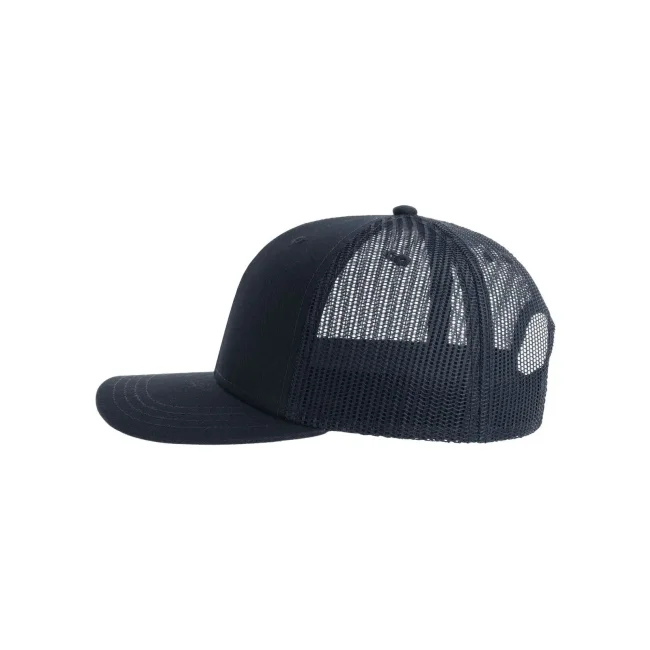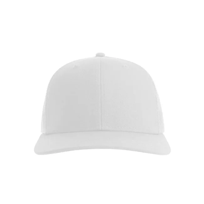 Cappellino Sonic-S composto da 100% cotone twill organico e poliestere riciclato. Presenta una visiera precurvata, occhielli ricamati e una rete posteriore traspirante. La chiusura in PVC e le 4 cuciture sulla visiera aggiungono robustezza, con etichetta removibile per personalizzazione.