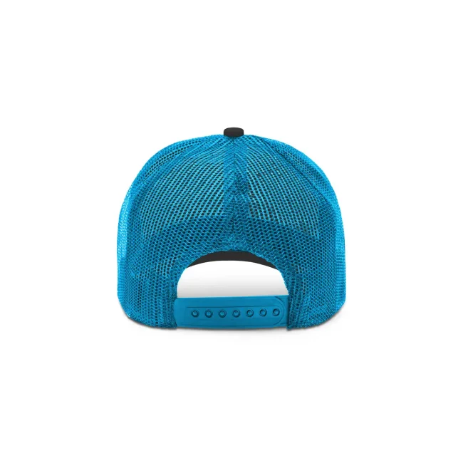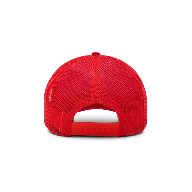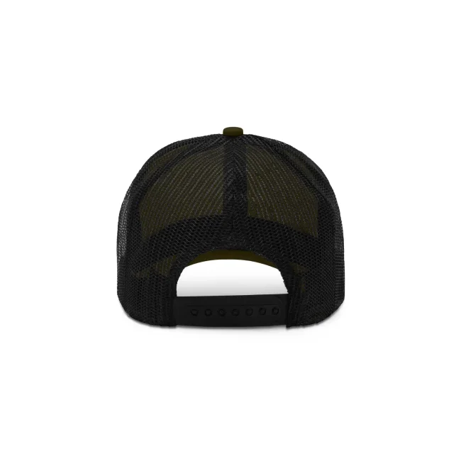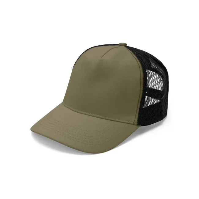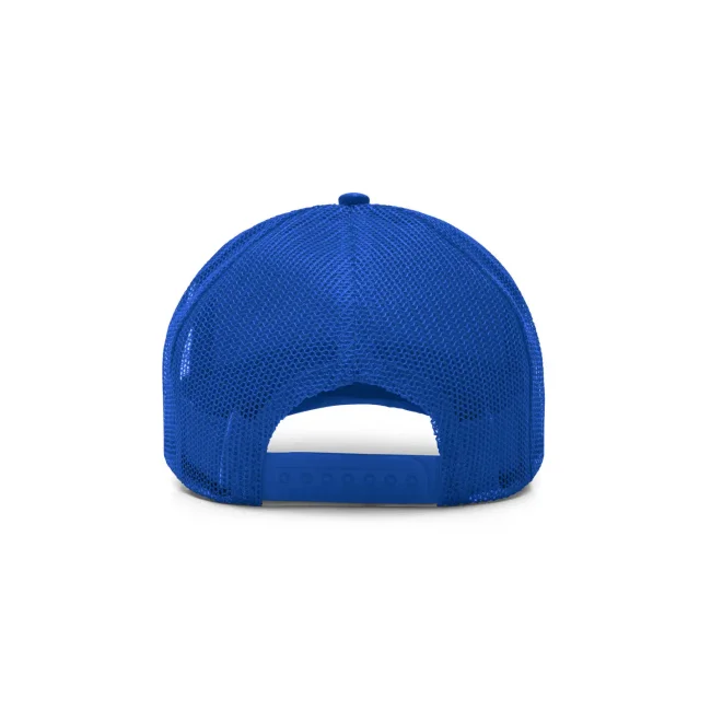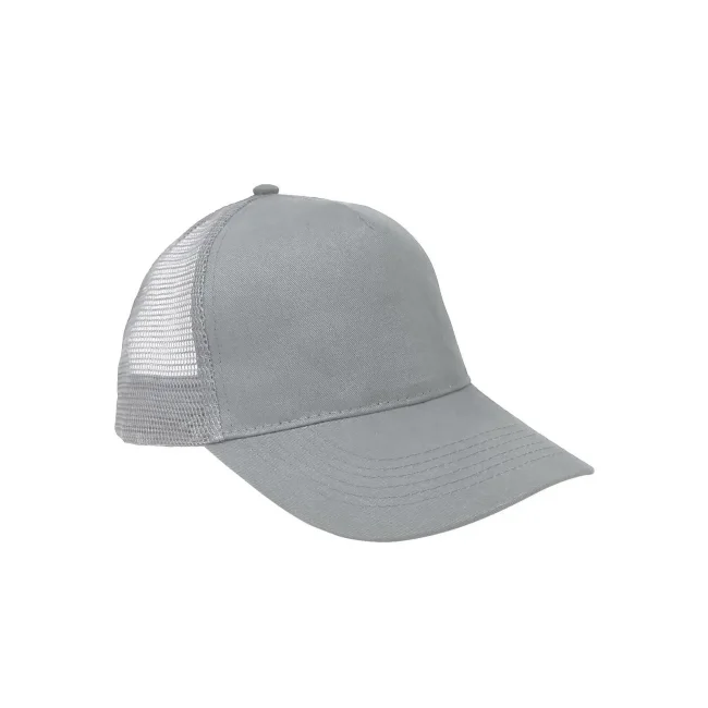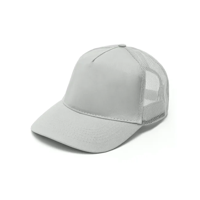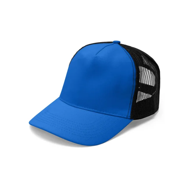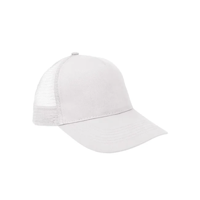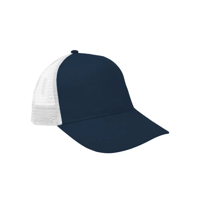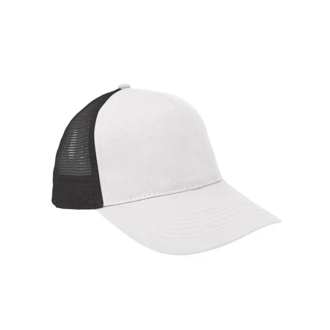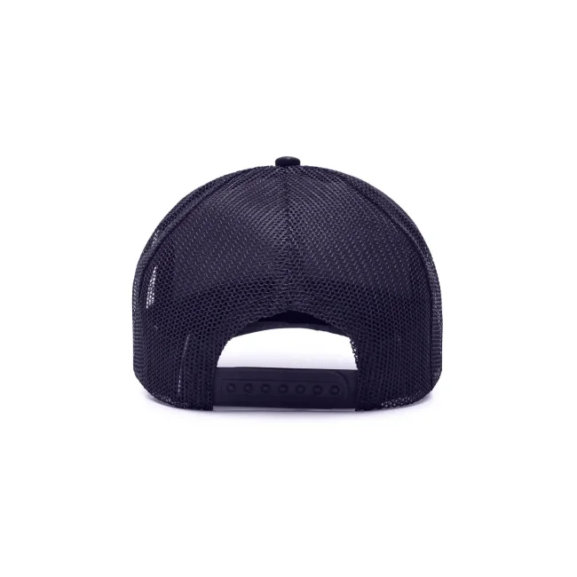 Cappellino Trucker realizzato in 100% cotone, progettato con 5 pannelli e mesh posteriore e laterale in poliestere per una migliore ventilazione. La visiera pre-curvata e il pannello frontale rinforzato offrono comfort e stile, mentre la chiusura in PVC assicura una vestibilità ottimale.