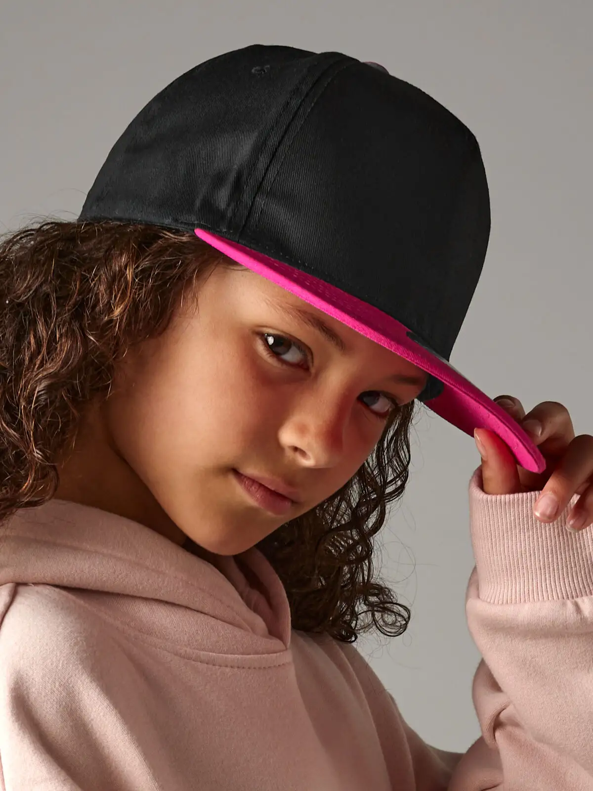 Cappellino Youth Size Snapback in cotone twill per ragazzi con visiera piatta