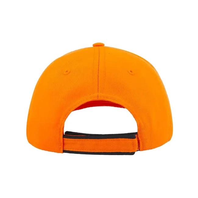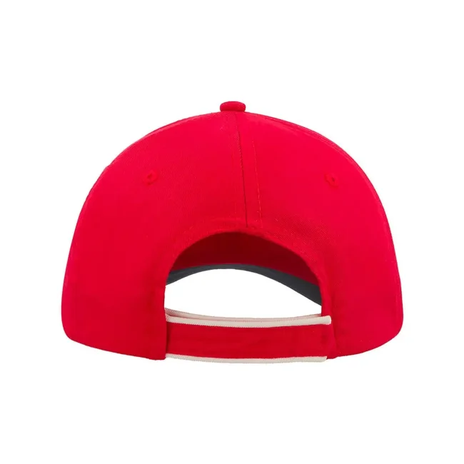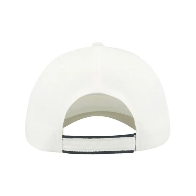 Cappellino a 6 pannelli realizzato in un mix di cotone e poliestere, dotato di visiera piping a contrasto e chiusura con cinturino in tessuto e velcro. La taglia unica e l'etichetta removibile lo rendono adatto per personalizzazioni e branding aziendale, garantendo comfort e praticità.