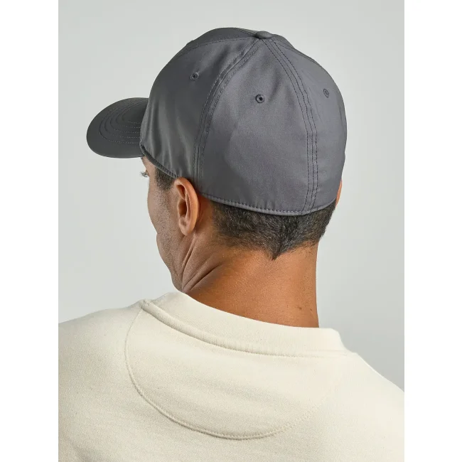 Cappello Pitch realizzato in poliestere riciclato twill al 95% e 5% elastane, presenta una struttura a sei pannelli e un mid visor. L'etichetta removibile assicura comfort e praticità per un uso quotidiano.