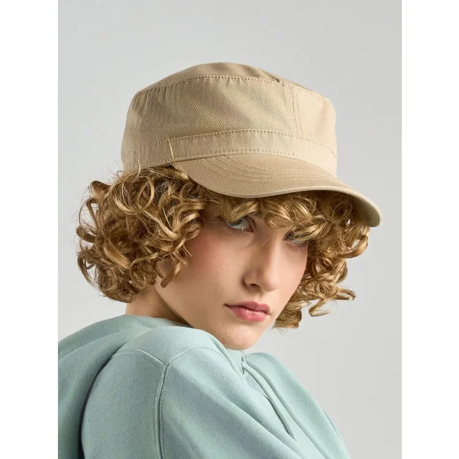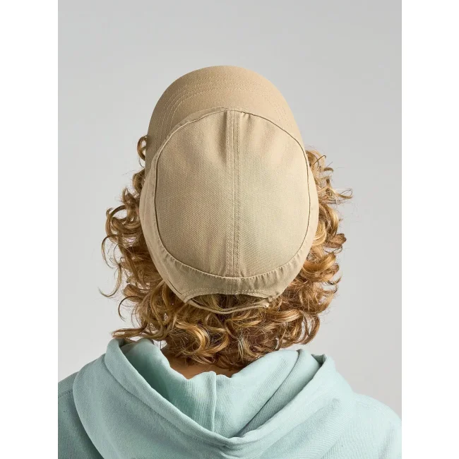 Cappello army realizzato in cotone organico e cotone riciclato, progettato per offrire una maggiore morbidezza grazie a un doppio processo di lavaggio. La visiera è in plastica riciclata e la chiusura è a strappo, per un comfort ottimale.