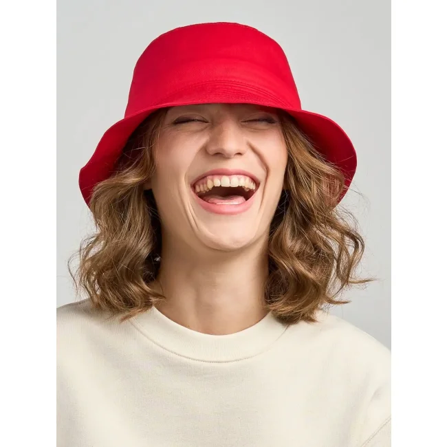 Cappello Bucket realizzato con 80% cotone organico e 20% cotone riciclato. La fascia parasudore nello stesso tessuto offre un comfort ottimale. Un accessorio versatile e personalizzabile per ogni esigenza.