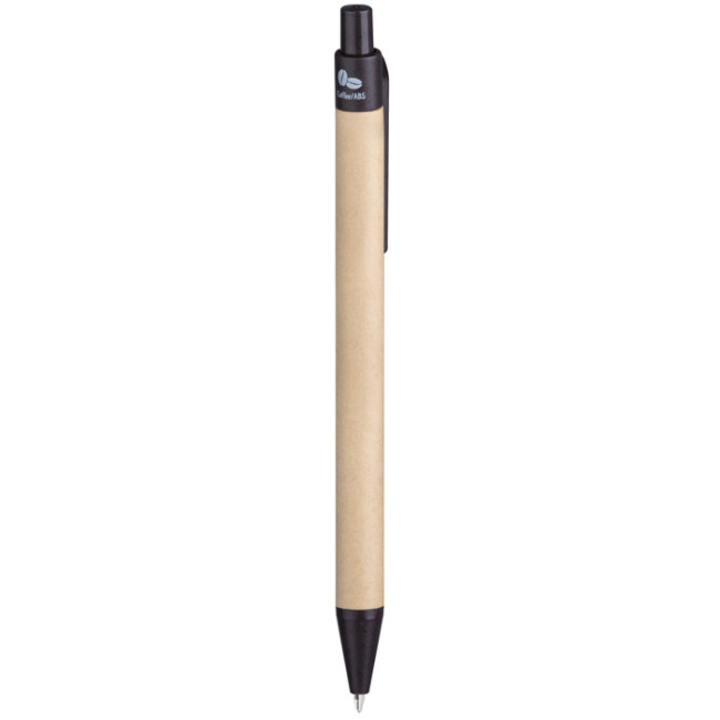penna a sfera meccanismo a scatto corpo in carta minuterie in 50% caffè e 50% ABS. tecnica di stampa consigliata: serigrafica - tampografica - UV