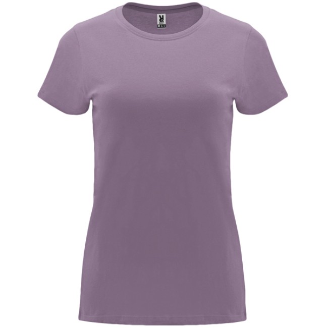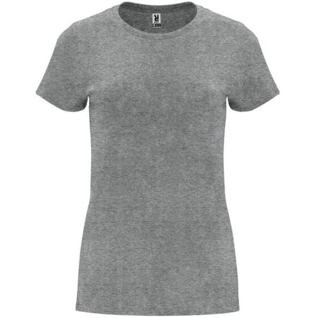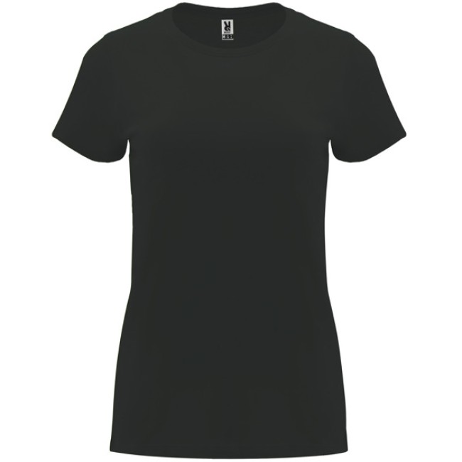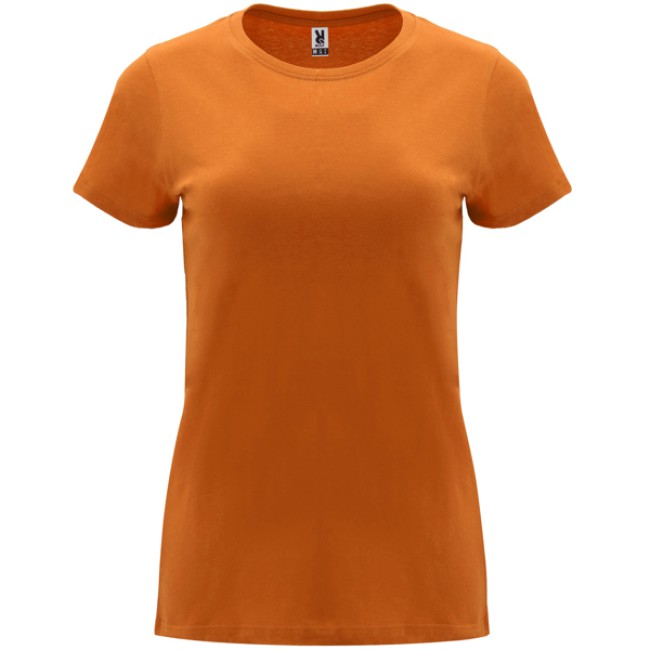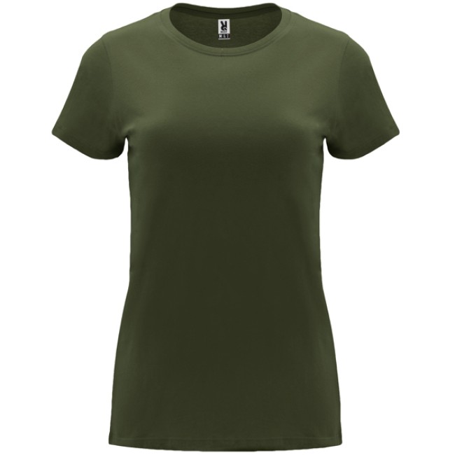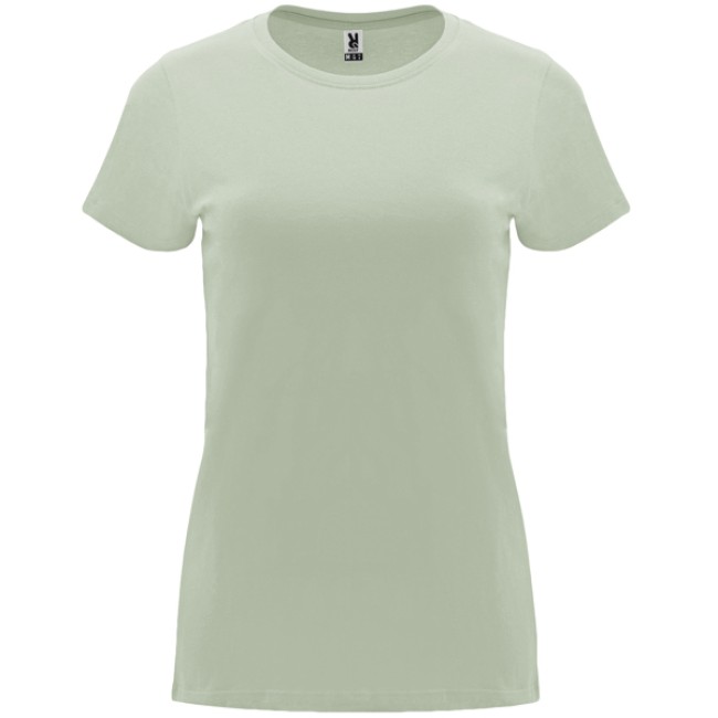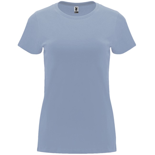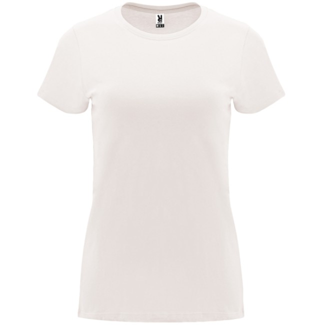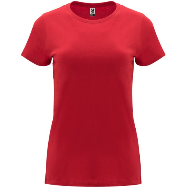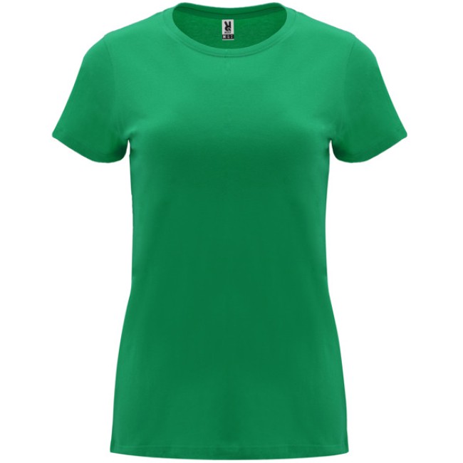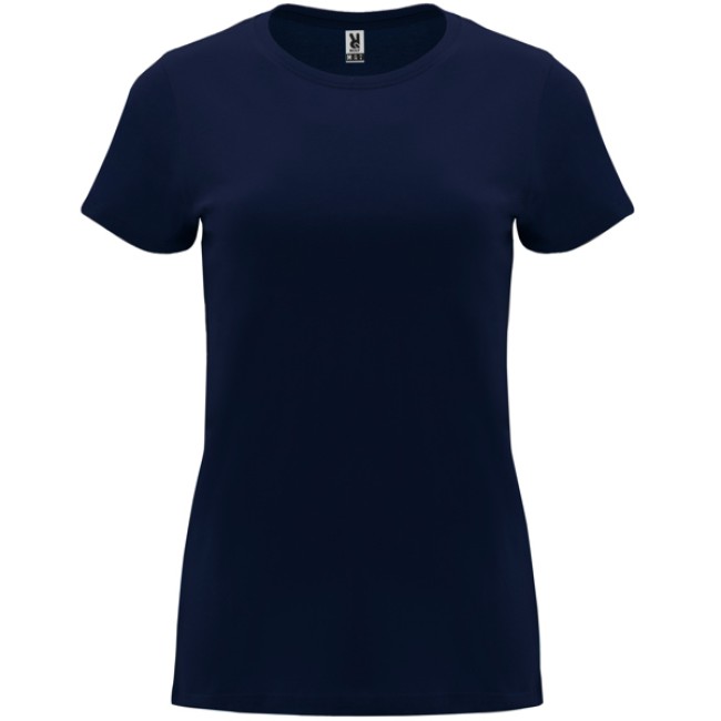 T-shirt manica corta sfiancata per donna. Gricollo in costina 1x1. Taglio aderente. Copri cuciture rinforzate sul collo.