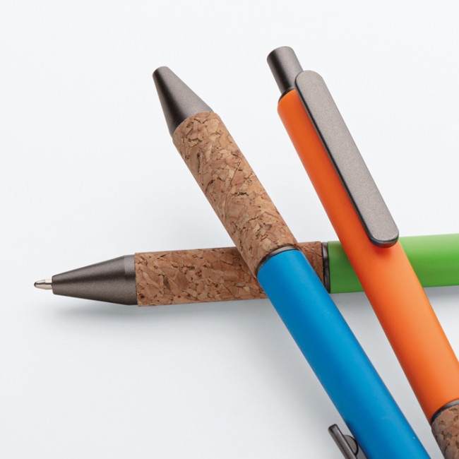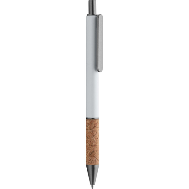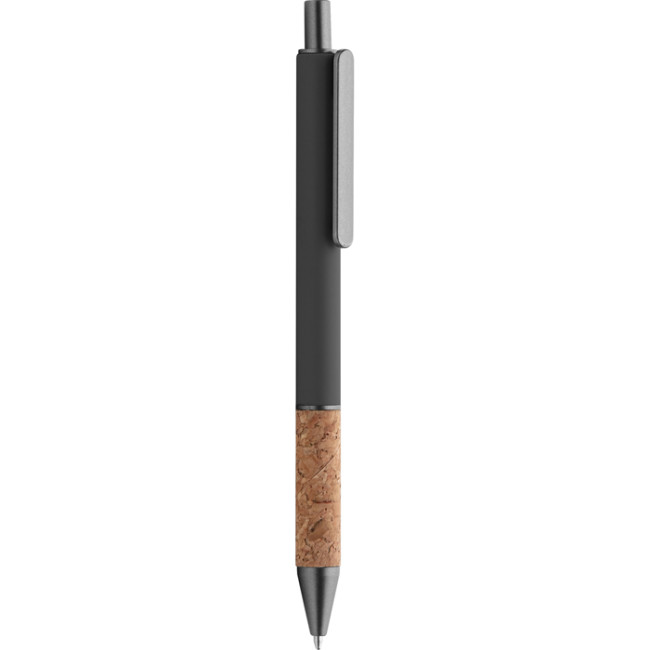 penna a sfera meccanismo a scatto fusto in plastica e sughero minuterie in metallo grigio refill nero