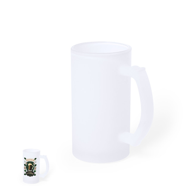 Caraffa Oxia in vetro opaco con capacità di 500 ml, dotata di un comodo manico. Progettata specificamente per la sublimazione, è presentata in una scatola kraft individuale, unendo funzionalità e design elegante.