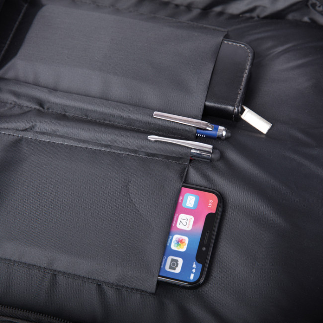 zaino poliestere 300D tasca porta documenti tasca imbottita porta pc/tablet fascia trolley posteriore spallacci imbottiti e regolabili a scomparsa laptop fino a 15"