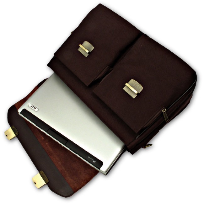 Cartella wrc in pelle color marrone e nylon 1680d particolari metallo color ottone antichizzato confezione in polybag
