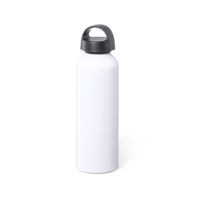Borraccia da 800 ml, in alluminio con finitura lucida. Tappo a vite nero con manico integrato, senza BPA. Disponibile in un'ampia gamma di colori e confezionata singolarmente in una scatola dal design kraft.Manuale di istruzioni disponibile in spagnolo e inglese.