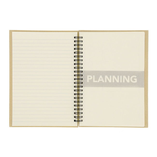 Taccuino con planner mensile incluso, con copertine rigide in cartone riciclato. Include 80 fogli color crema con righe e taglio facilitato, 13 fogli di planner mensile non datato con vista calendario mensile e 2 fogli aggiuntivi per appunti con disposizione a righe. Perfetto per pianificare il mese, prendere appunti e organizzare la tua quotidianità. Il cartone riciclato proviene dal riutilizzo di eccedenze di produzione e dal riciclo della carta a fine vita, trasformandosi in una tela ecologica e sostenibile.