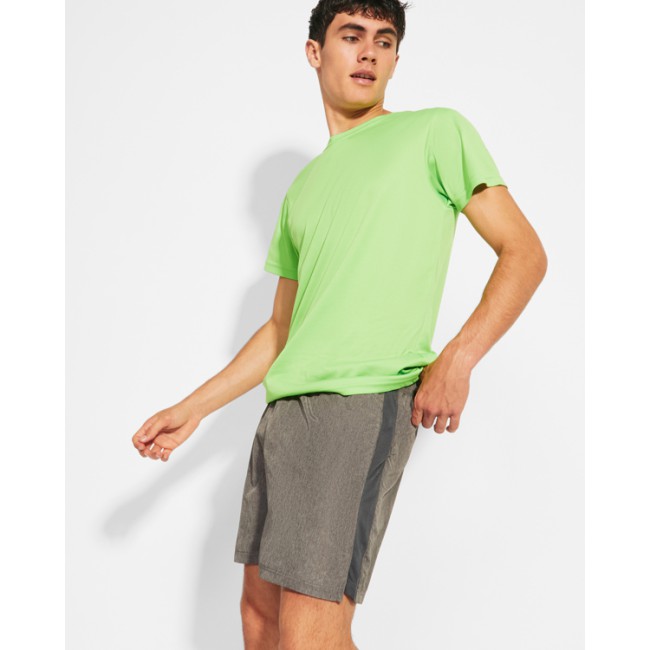 Pantaloncini multi-sport in doppio tessuto e slip interno.Girovita elastico con cordoncini interni incrociati a contrasto. Fascia laterale ed interno della gamba in tessuto traspirante. Due tasche laterali. Aperture laterali con forma asimmetrica.