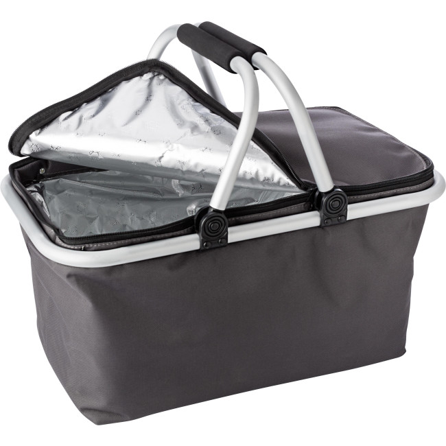 Cestino termico shopping pieghevole, linea Oxford, scomparto con chiusura lampo, impugnatura tonda in alluminio con presa in EVA, in poliestere 320 D