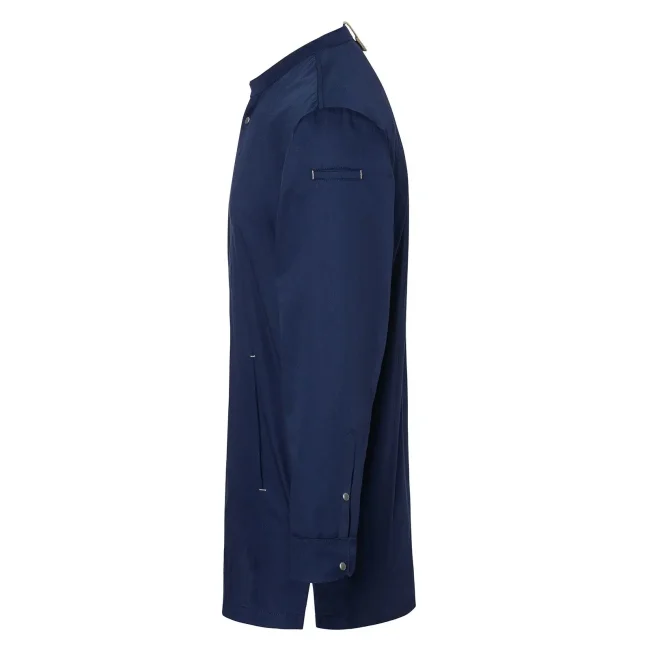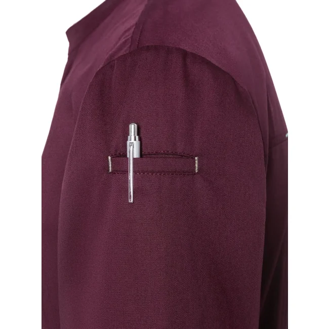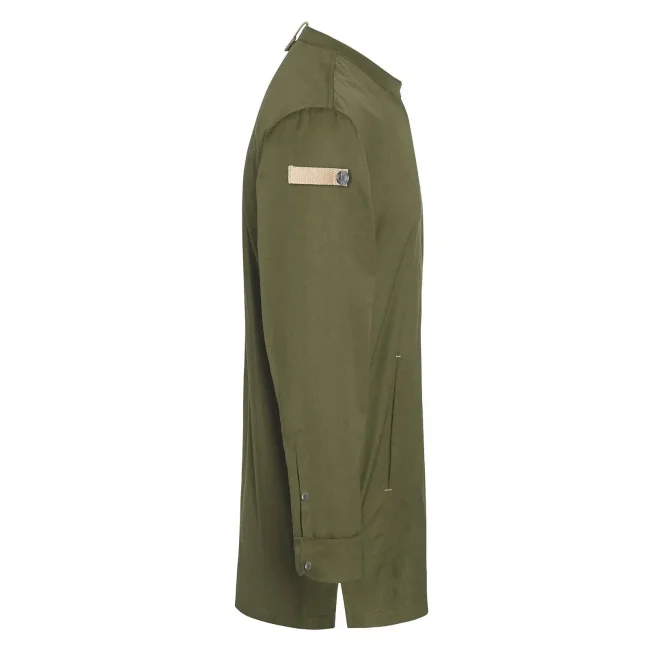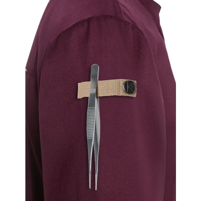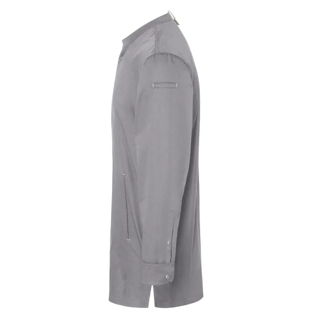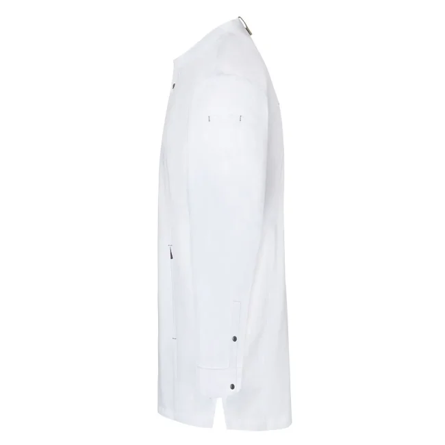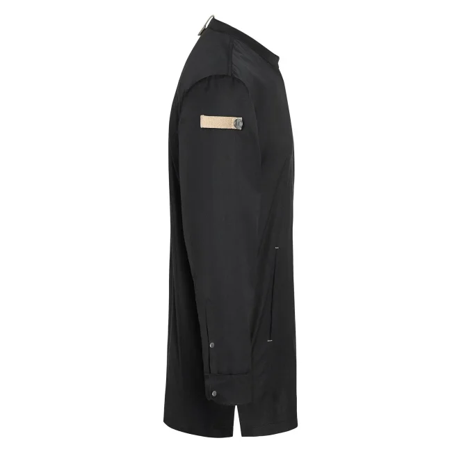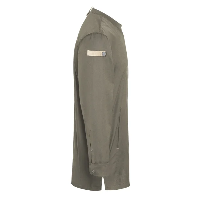 Lato anteriore: 65% cotone organico, 35% poliestere riciclato, Lato posteriore: 100% poliestere riciclato. Lato anteriore 150 g/m², Lato posteriore 150 g/m². Giacca da cuoco sostenibile, traspirante, con regolazione dell'umidità, maniche lunghe. Taglio moderno (leggermente aderente), inserto posteriore in Jersey Piqué per una maggior ventilazione e libertà di movimento, bottoni automatici, polsini con apertura. Lato anteriore con tasche con zip e tasca a filetto sulla manica sinistra, nastri a contrasto su maniche e collo. Lavabile a 60°C.