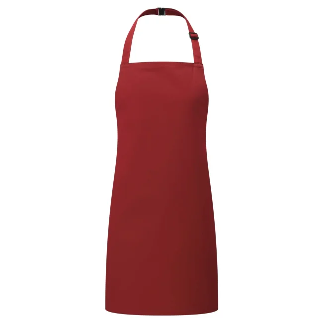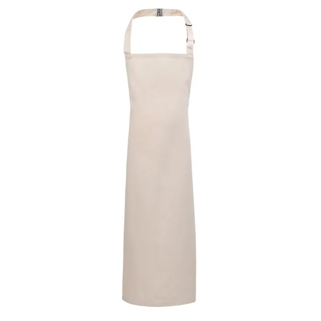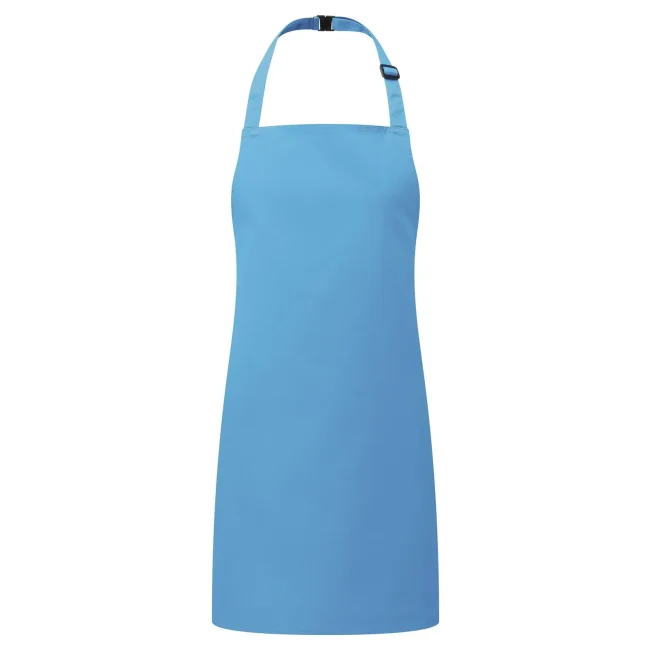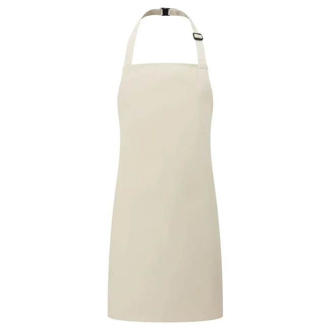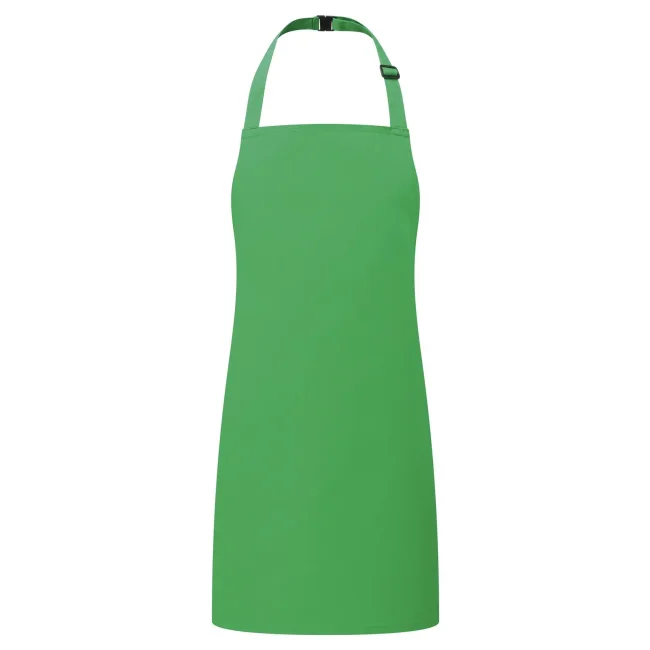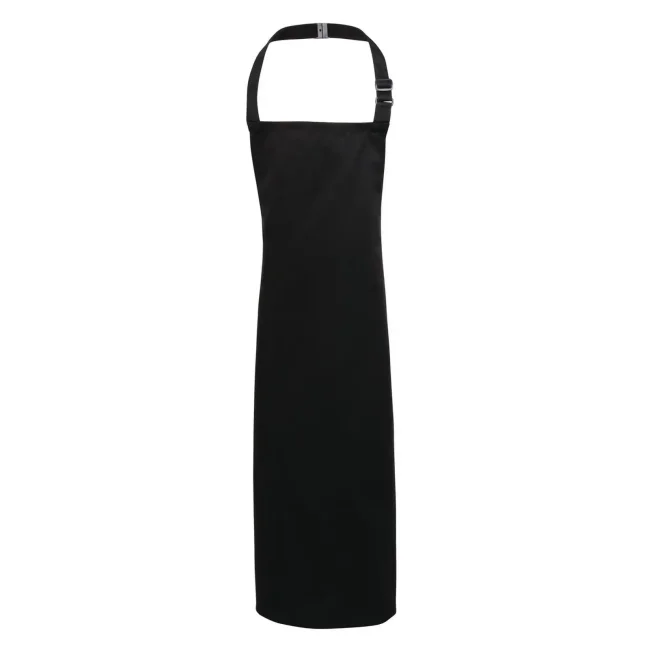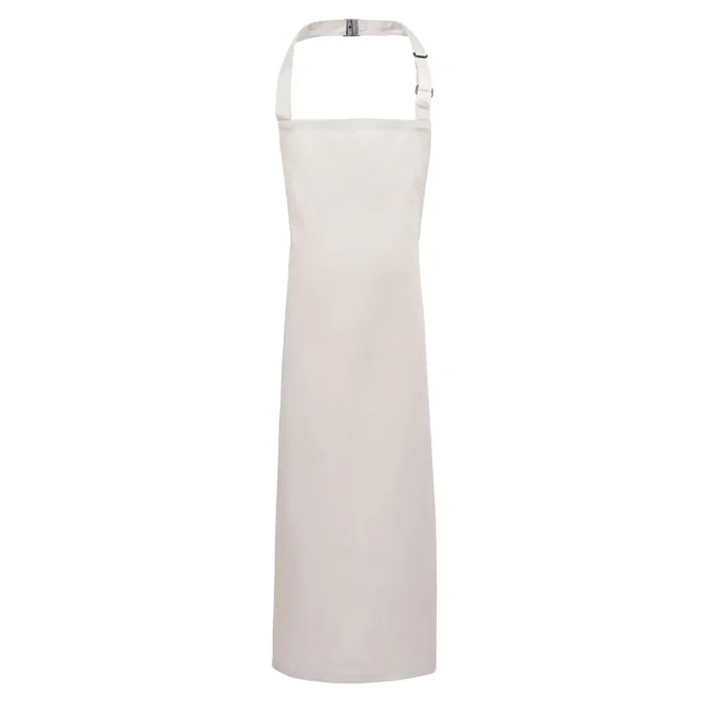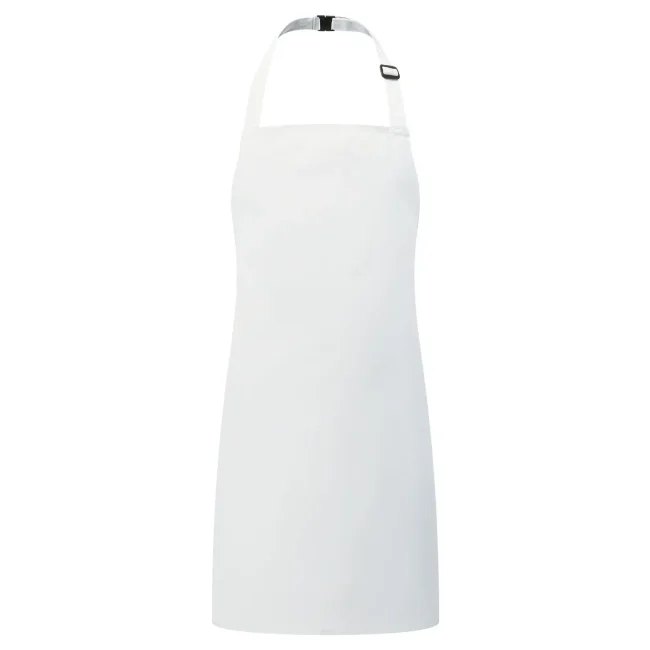 65% poliestere, 35% cotone twill. Grembiule con pettorina senza tasca, laccio collo regolabile con fibia. Lavabile in lavatrice domestica a 60° e 85° in lavatrice industriale.