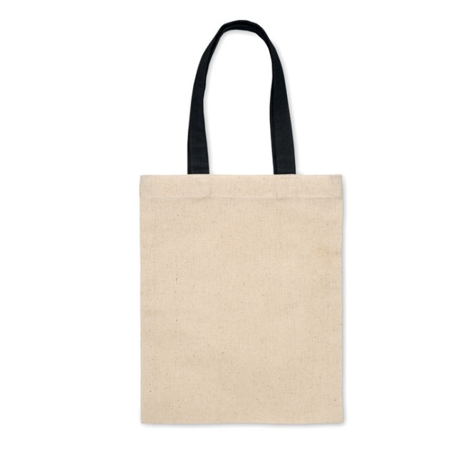Piccola shopper in cotone con manici corti. 140 gr/m². Questo prodotto è certificato OEKO-TEX® STANDARD 100.