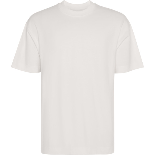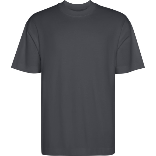 T-shirt oversize spessa a maniche corte. Girocollo a coste larghe 2x1. Scollo nastrato in tessuto coordinato. Doppie cuciture ampie su orlo e maniche.