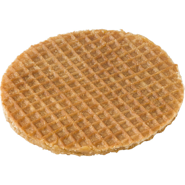 Otto deliziose cialde di wafer olandesi ripieni di sciroppo al caramello, in sacchetto per alimenti, con barattolo consegnato separatamente, coperchio bianco adatto per la stampa. Autentici cialde di wafer olandesi realizzati con ingredienti naturali, ripieni di due waffle (8% di burro) e sciroppo di caramello (50%), preparato con ingredienti naturali e senza aromi artificiali.