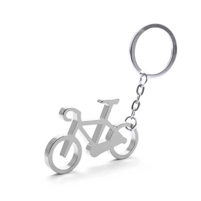Portachiavi a forma di bicicletta con corpo in alluminio in vari colori brillanti. Appositamente progettato per la stampa laser.
