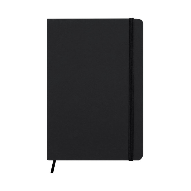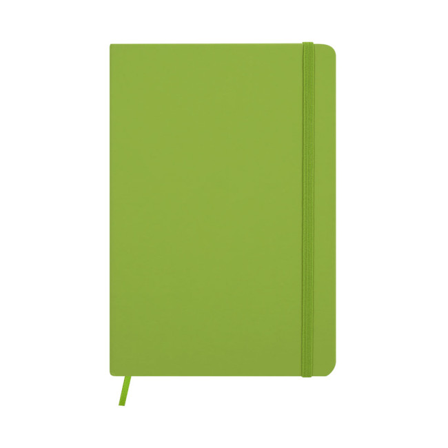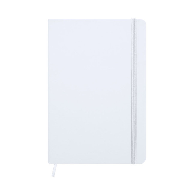 Block Notes A5 con copertina rigida realizzata in morbido PU, dotato di 100 fogli a righe. Include segnalibro in tessuto e fascia elastica coordinati. Disponibile in una ampia gamma di colori.