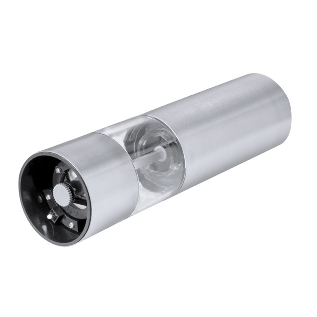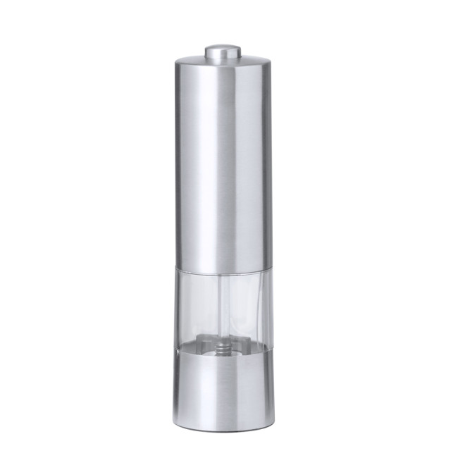 Macina sale e pepe elettrico in acciaio inox. Ideale per aggiungere la spezia più desiderata in scomparto da 70 ml, insaporire premendo il pulsante superiore e regolare la dimensione dei grani. Dotato di finestra per visualizzare la quantità di spezie rimanenti e di luce LED. Alimentato da 4 batterie AAA (non incluse) e presentato in una scatola di design kraft.