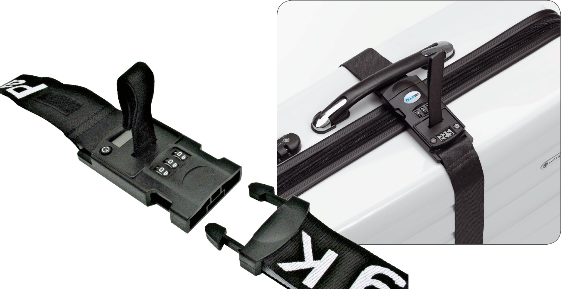 Dotata di lucchetto con combinazione e bilancia in kg e libbre da 1 a 40 kg.