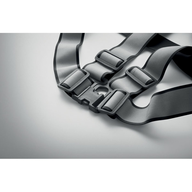 Cintura regolabile a 360° progettata per garantire visibilità e sicurezza, dotata di strisce argentate riflettenti. Conforme alla norma EN17353, è un accessorio utile per chi lavora in ambienti a bassa visibilità.
