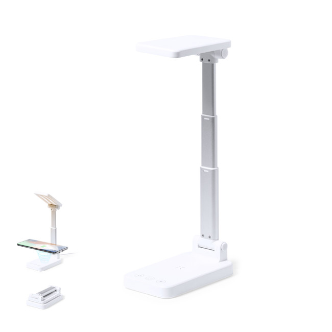 Lampada multifunzione pieghevole tutto in uno, in una combinazione di alluminio e ABS bianco resistente. 28 LED e 3 posizioni di illuminazione (calda, fredda e media), con intensità luminosa regolabile e altezza regolabile. Caricatore wireless integrato da 10W e batteria da 3.000 mAh, con ingresso Type-C e uscita USB. Compatibile con i dispositivi mobili a ricarica wireless, con cavo di ricarica di tipo C incluso e presentato in una scatola dal design accattivante.Le capacità indicate in tutti i nostri power bank sono reali tutti incorporano batterie non riciclate di grado A, con una durata di almeno 500 cicli di ricarica e conformi alle normative CE. Inoltre, sono prodotte secondo gli standard RoHS e in conformità ai seguenti requisiti di sicurezza: Sistema di protezione da sovraccarico del power bank. Sistema di protezione completa contro le scariche, che aumenta la durata del power bank. Sistema di blocco per prevenire i cortocircuiti. Sistema di trasferimento costante della carica, in base alla capacità del dispositivo di destinazione.