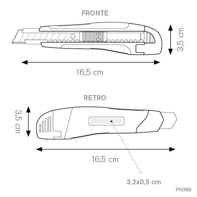 taglierino con lama a sezioni tasto per bloccaggio tecnica di stampa consigliata: serigrafica - tampografica - UV