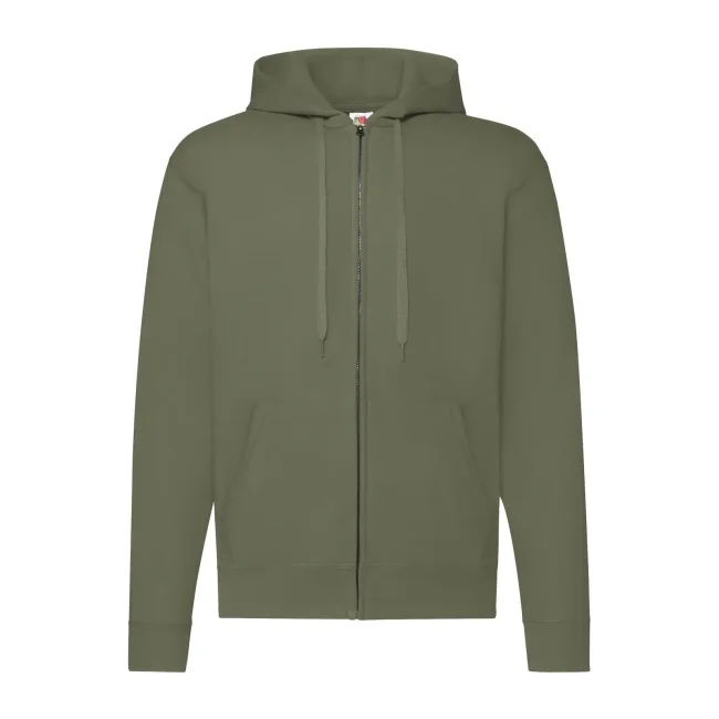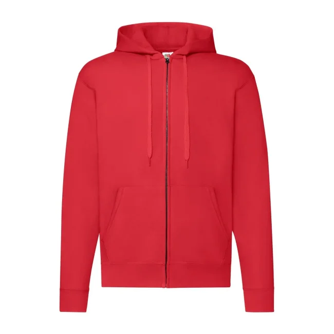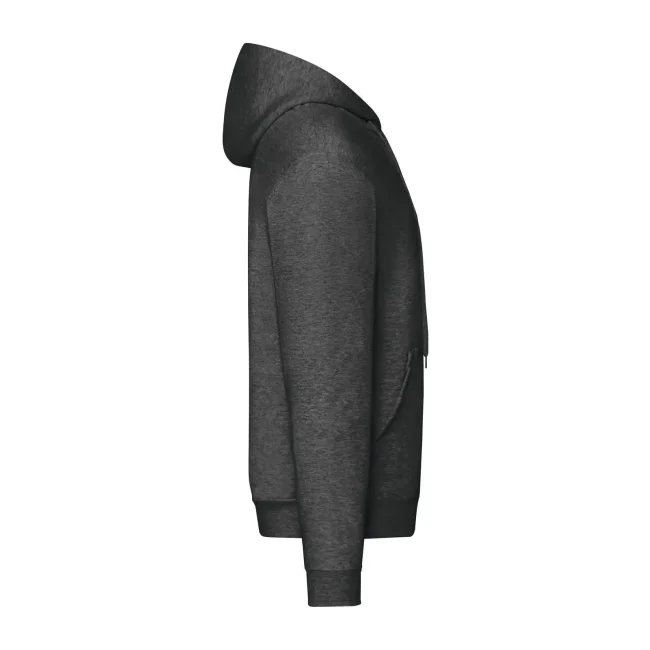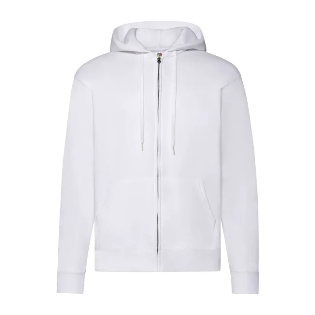80% cotone, 20% poliestere. Felpa con maniche set-in, cappuccio con cordoncino in tinta, tasca a marsupio, cerniera nascosta per favorire la stampa, felpata internamente. Struttura con busto tubolare. Etichetta removibile. (Col. 30/94: 260 g/m²).
